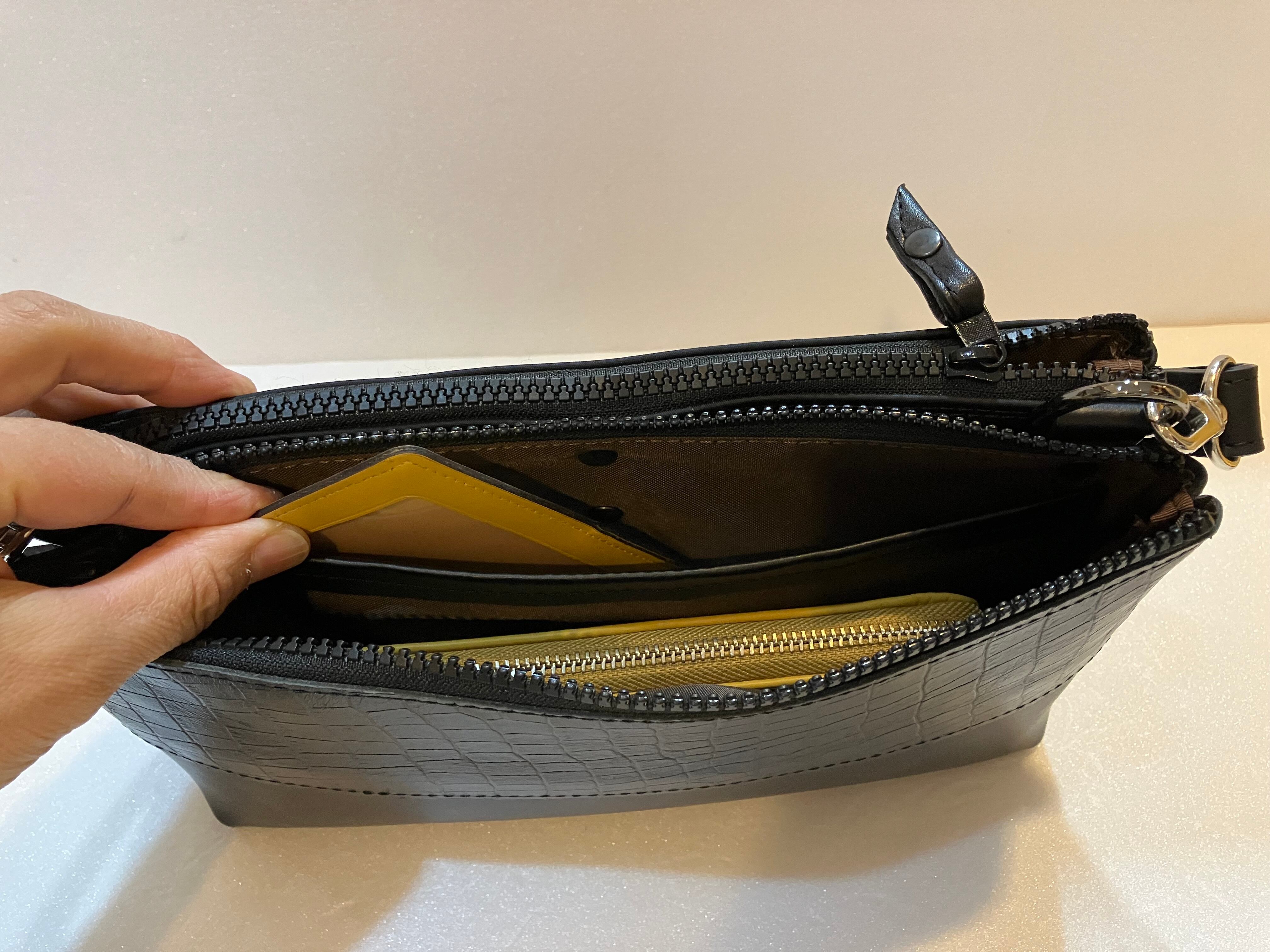 SOLDOUT❗️ボディバックからショルダーまで クロコ型押し黒+つや黒